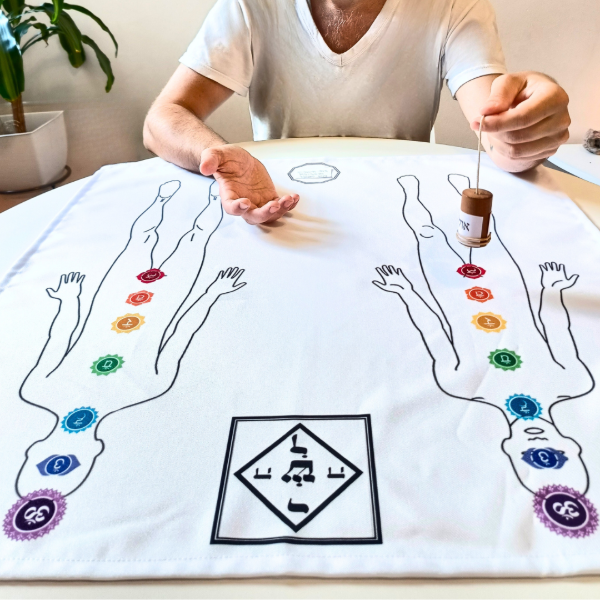 🌀 Doble Decágono: El lugar sagrado para el testigo. Gracias a su geometría, el doble cuántico se aloja instantáneamente en la manta para que logres un diagnóstico exacto y sin interferencias.