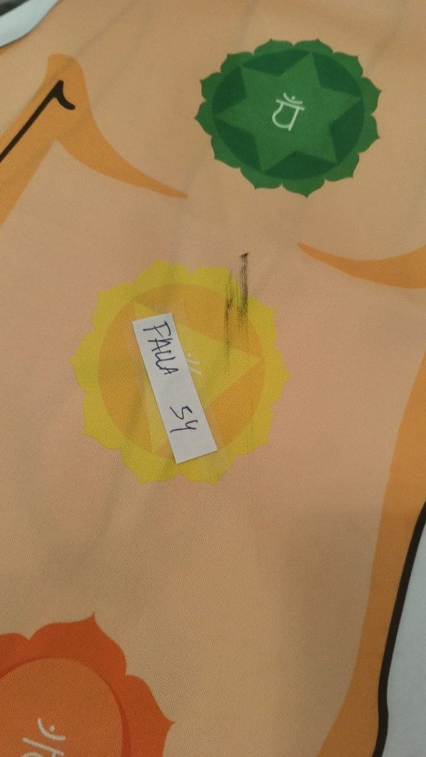 Sobre el dibujo del Chakra Manipura, se ven dos lineas de tinta negra.
