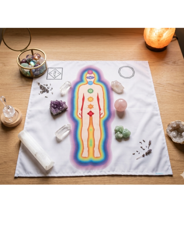 Hecha de materiales de alta calidad, esta manta está diseñada para representar cada uno de los 7 vórtices energéticos principales y ayudarte a concentrarte y enfocarte en tu práctica.