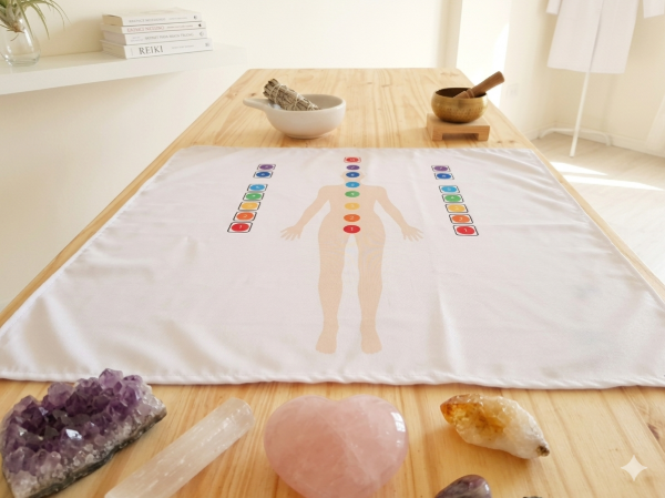 Hecha de materiales de alta calidad, esta manta está diseñada para representar cada uno de los 7 vórtices energéticos principales y ayudarte a concentrarte y enfocarte en tu práctica.